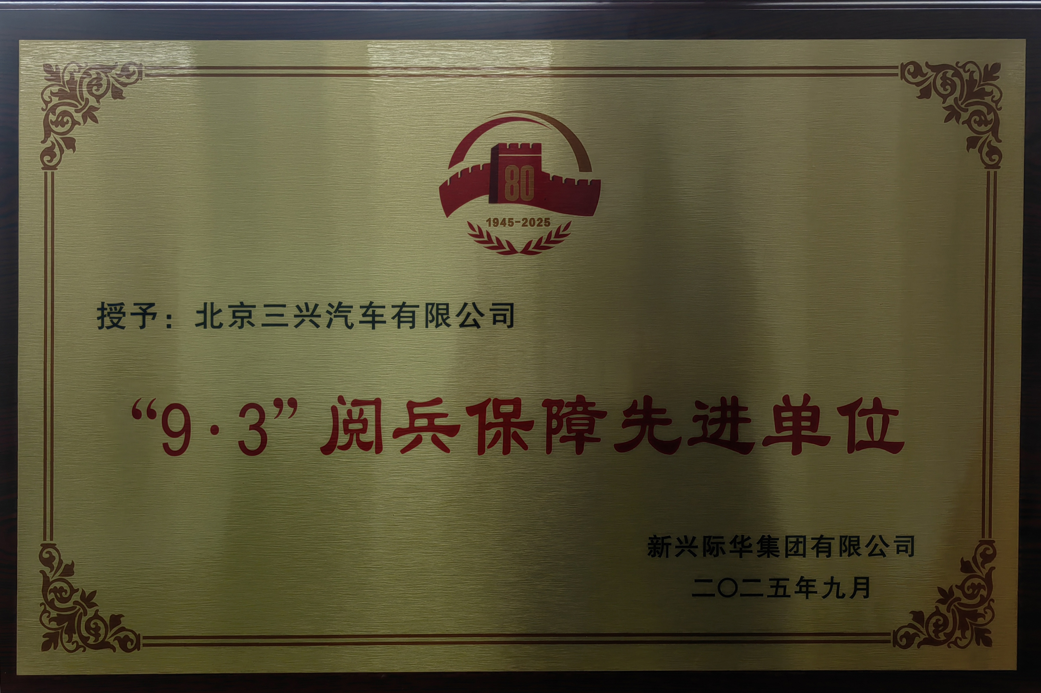 9月10日上午,集團公司在京召開紀(jì)念中國人民抗日戰(zhàn)爭暨世界反法西斯戰(zhàn)爭勝利80周年閱兵保障總結(jié)表彰會,全面總結(jié)集團公司在閱兵保障工作中的突出貢獻,表彰先進單位和先進個人。會議表彰了1戶“‘9?3’閱兵保障突出貢獻單位”、12戶“‘9?3’閱兵保障先進單位”和44名“‘9?3’閱兵服務(wù)保障先進個人”。北京三興汽車公司獲“‘9?3’閱兵保障先進單位”。